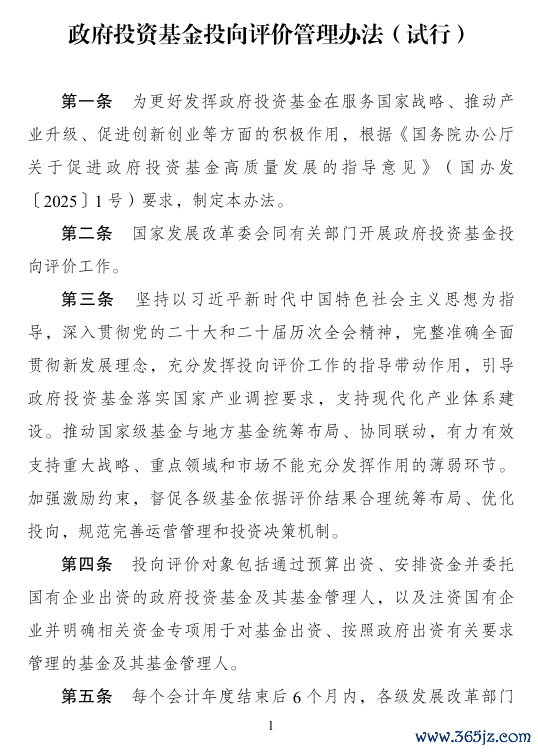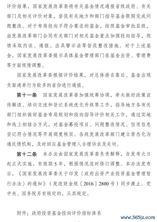 1月12日,国家发展改革委发布《政府投资基金投向评价管理办法(试行)》。