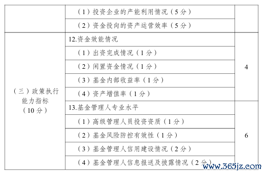 (三)政策执行能力指标,主要评价资金效能情况及基金管理人专业水平等。